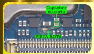 C8028 kondansatörü kısa devre olduğunda (çoğu A34’te çok yaygın), VSYS / VPH_PWR hattı o noktada kesiliyor ve pista (iz) kopuyor.